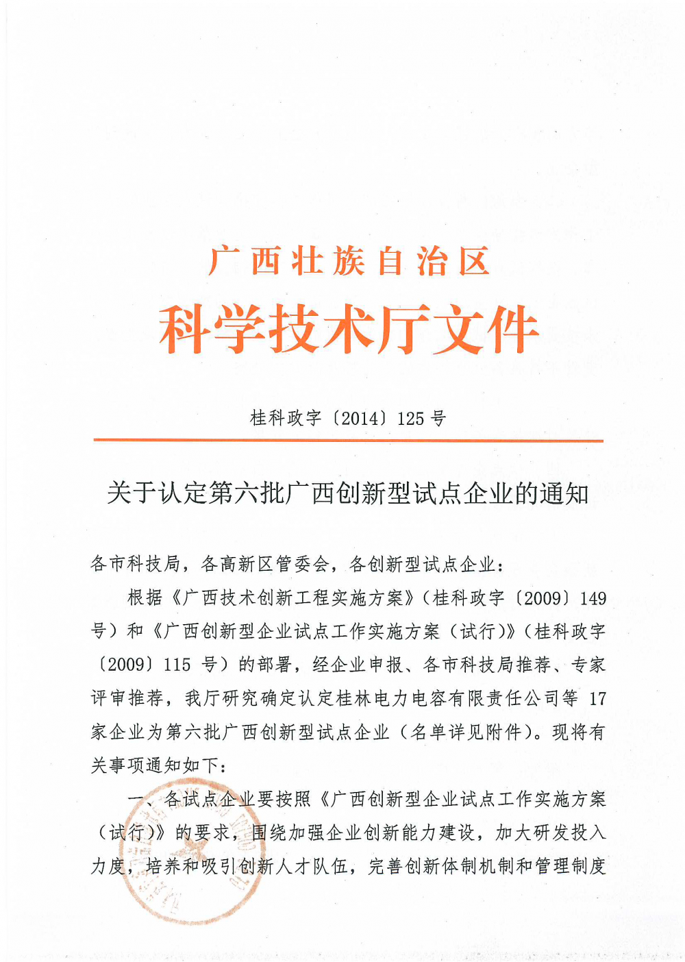 9月28日,根据《广西技术创新工程实施方案》(桂科政字〔2009〕149号)和《广西创新型企业试点工作实施方案(试行)》(桂科政字〔2009〕115号)的部署,经企业申报、各市科技局推荐、专家评审推荐,广西科学技术厅研究认定博亚体育在线官网为第六批广西创新型试点企业,广西区内入围此次认定的企业仅17家。