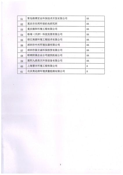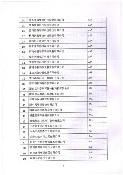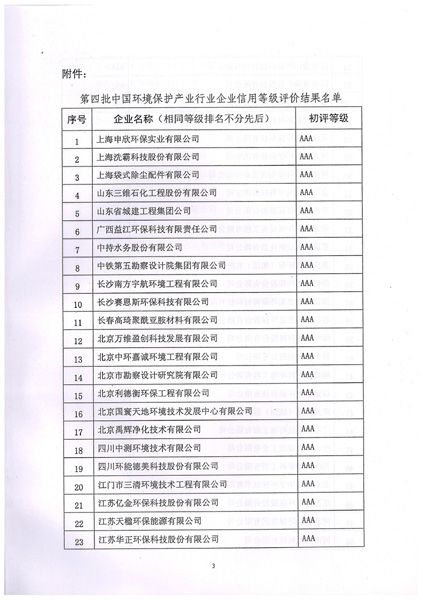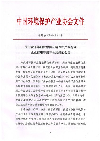 关于发布第四批中国环境保护产业行业信用等级评价结果的公告