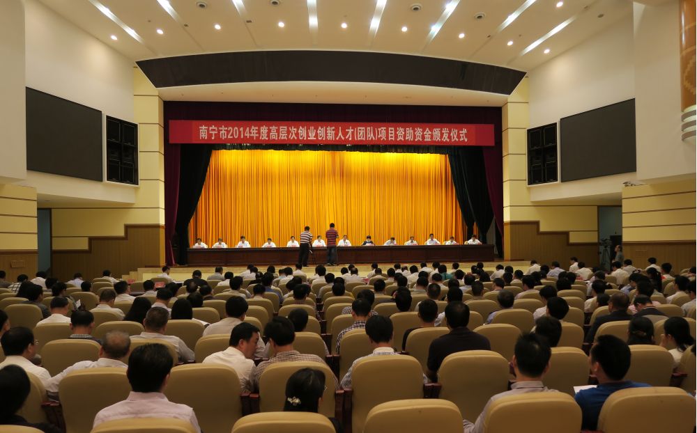 图1 南宁市2014年度高层次创业创新人才(团队)项目资助资金颁发仪式现场