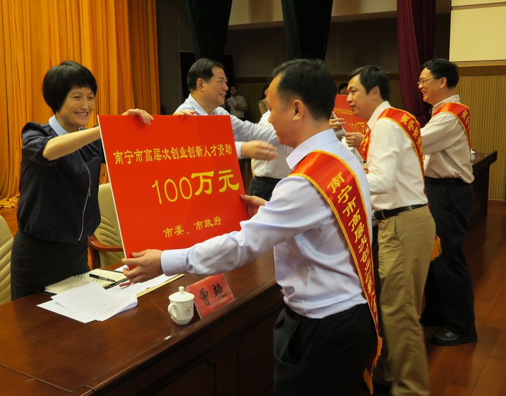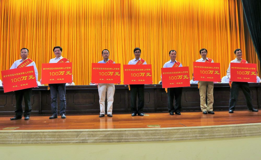 南宁市委人才工作领导小组通过组织答辩以及严格的评审程序,最后评选出15个项目(团队),分为奖励500万、300万、100万、50万,旨在鼓励一批具有国内先进水平、在相关领域做出突出贡献的优秀专家(团队),鼓励支持这些人才(团队)创新创业,吸引更多高层次创业创新人才到南宁发展、干事业。