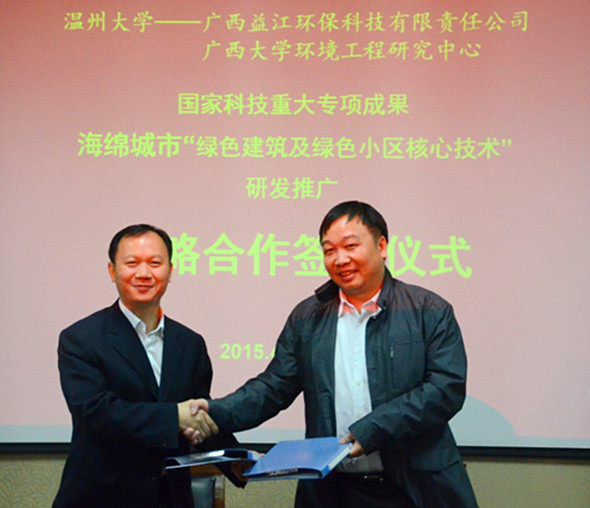 4月22日,广西博亚体育在线官网科技有限责任公司与温州大学就国家科技重大专项成果——海绵城市“绿色建筑及绿色小区核心技术”的研发推广签订了战略合作协议。