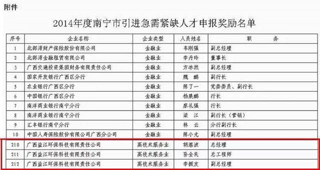 3、2016年1月,胡湛波董事长、孙全民总工程师、李振友副总经理获评“南宁市引进急需紧缺人才”。