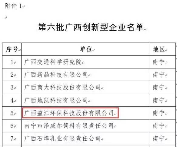 5、公司在2014年获认定为第六批广西创新型试点企业后,经过两年培育,在技术研究、新产品开发、科技成果转化、知识产权推进、产品技术工艺改进等方面取得了显著的创新成就,2016年10月成功获广西科学技术厅认定为“广西创新型企业”(桂科高字〔2016〕205号)。