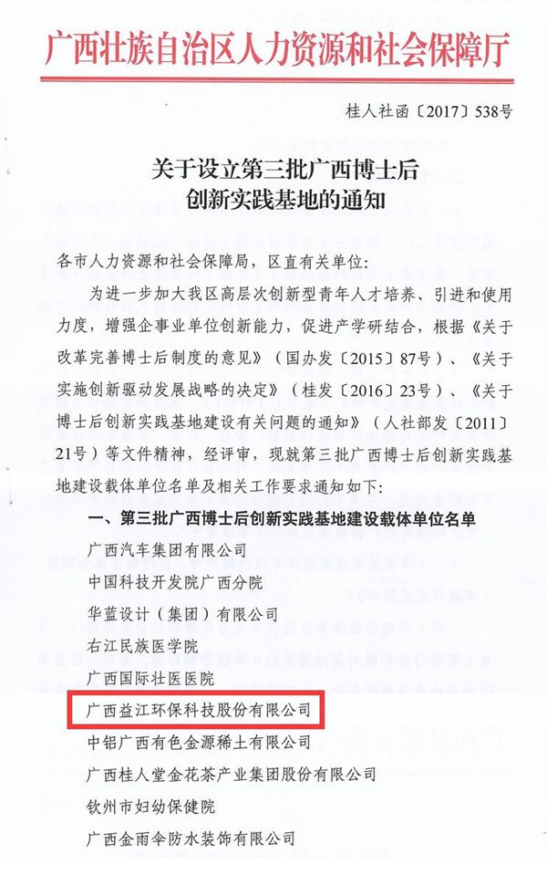 7月5日,广西壮族自治区人力资源和社会保障厅公布了“第三批广西博士后创新实践基地”建设载体单位名单,博亚体育在线官网成功入选。