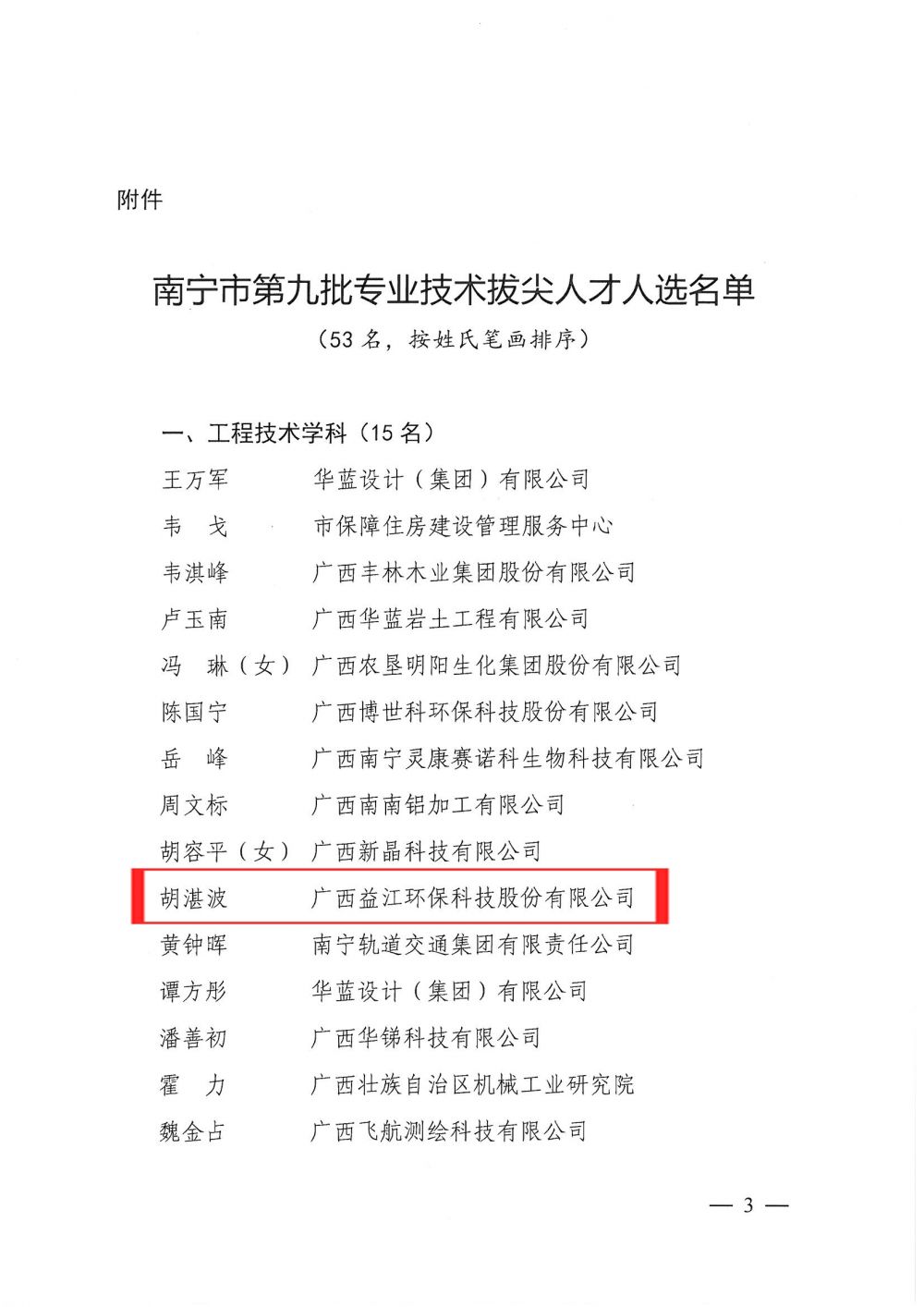 5月21日,中共南宁市委员会与南宁市人民政府联合发布了《关于印发<南宁市第九批专业技术拔尖人才人选名单>的通知》,博亚体育在线官网董事长胡湛波入选南宁市第九批专业技术拔尖人才人选名单。