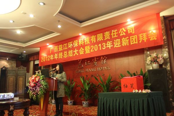 2月1日下午,博亚体育在线官网2012年年终总结大会隆重举行。在全体益江人的热烈掌声中,公司领头人胡湛波教授上台做2012年工作总结,向与会人员通报了2012年度公司的发展情况。2012年,公司实现了跨越式发展,业绩翻了几番,开辟了石漠化治理、湖泊治理、乡镇集镇所在地生活污水治理等领域项目,已成为广西区内较著名的环保企业。在总结报告中,胡教授客观地分析了公司2012年的得与失,且不回避存在的困难和问题,对2013年公司经营管理、企业文化建设等方面进行了规划和部署,并公布了公司在员工福利方面的具体措施,获得了全体员工高度认可。