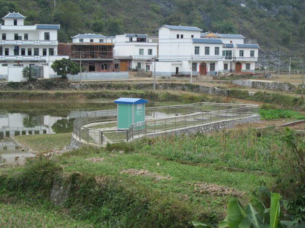 项目于2012年9月11日开工,2012年12月15日竣工。本项目采用“格栅+水解酸化+微动力好氧生化处理+沉淀”技术处理龙马村敢更屯的生活污水,微动力好氧生化处理选用自动控制及集成化程度较高的微动力地埋式一体化设备,处理能力为50吨/日,保证污水处理效率的同时最大化减少土地占用面积。