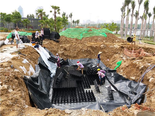本项目综合采用了博亚体育在线官网自主研发的海绵城市雨水处理集成技术,该技术集雨水收集、过滤净化、消毒、回用及自动化智能控制系统为一体,具有结构紧凑、占地面积小、无需建造机房、维护简单、操作便捷、坚固耐腐蚀等诸多优势,雨水经处理后出水水质清澈透明,主要指标达到观赏性用水标准。